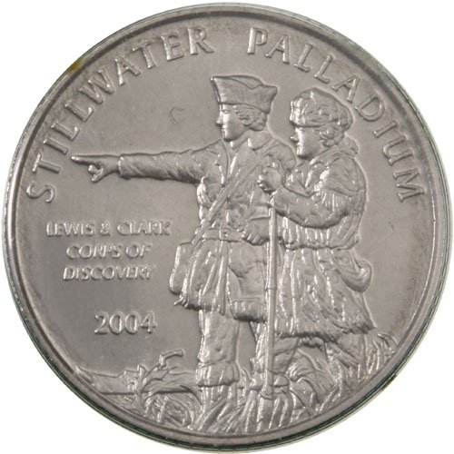 Obverse and reverse design elements will vary in this listing. One such example of 1/10 oz Palladium Rounds struck in the 21st century are the rounds in the Lewis & Clark edition from Johnson Matthey and Stillwater Mining Company. The rounds featured images of the famous explorers Meriwether Lewis and William Clark surveying the lands west of the Mississippi River obtained by the United States in the Louisiana Purchase.