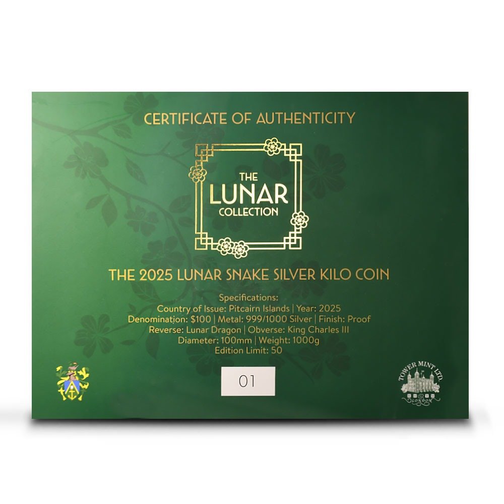 According to the Chinese Lunar Calendar, 2025 represents the Year of the Wood Snake. The Wood Snake is believed to endow people born in this year with a unique blend of wisdom and kindness, making them skilled in both personal and professional relationships. Today, 2025 1 Kilo Proof Pitcairn Islands Silver Lunar Year of the Snake Coins are available.