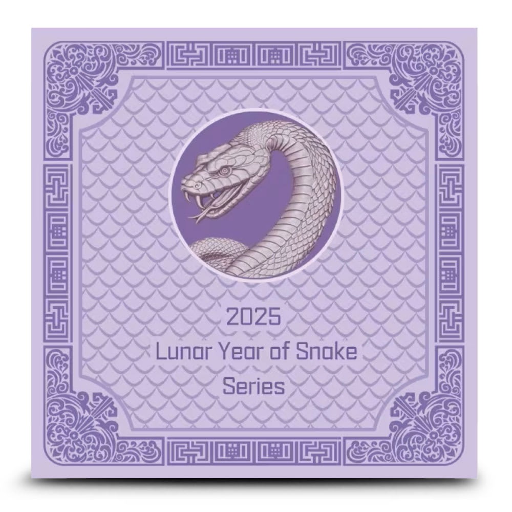 All 2025 1 oz Fiji Silver Snake Rectangular Coins available here come with individual packaging. The coins are housed in a presentation display and come with a Certificate of Authenticity. These specimens are plated throughout with a thin layer of 24-karat gold for added brilliance.