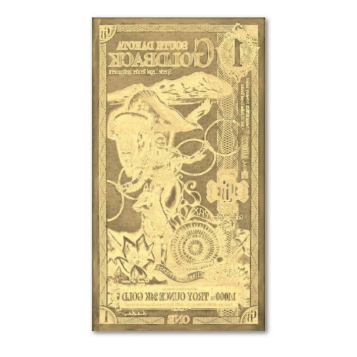 The reverse side of each 1 South Dakota Goldback Gold Note displays a mirrored image of the obverse. The thin nature of these gold notes means that any design on the reverse would impact the design of the obverse.