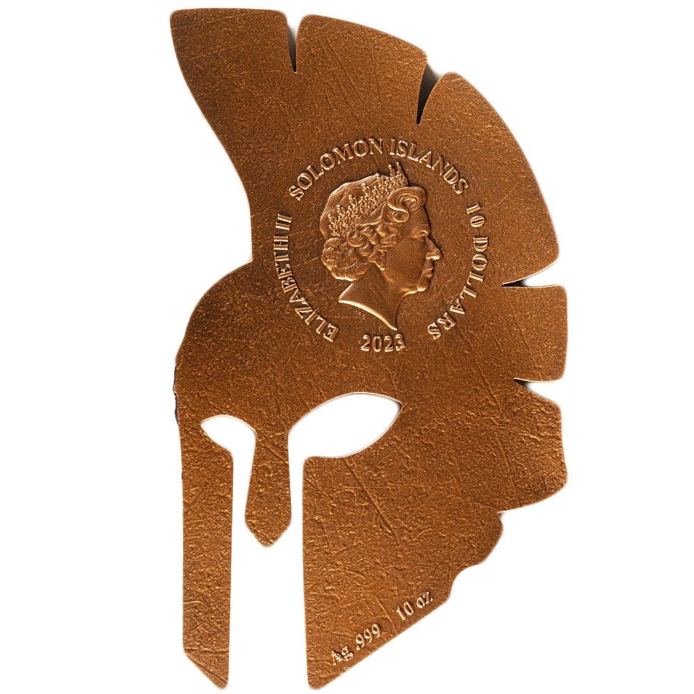 2023 10 oz Antique Solomon Islands Silver Trojan Helmet Shaped Coin (Box + CoA)