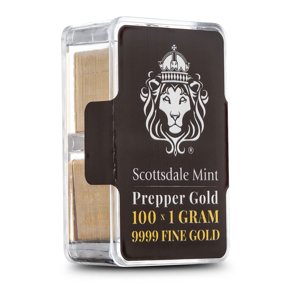 Preppers prioritize precious metals as a hedge against economic collapse, viewing gold and silver as enduring stores of value that would retain worth even if paper currency fails. Unlike digital assets or stocks, physical bullion can be directly possessed and traded, functioning as a universal medium of exchange independent of banking systems or electronic infrastructure. Scottsdale Mint has the ideal option for preppers looking to store gold. Now, 100 Gram Scottsdale Mint Gold Prepper Boxes are available online.