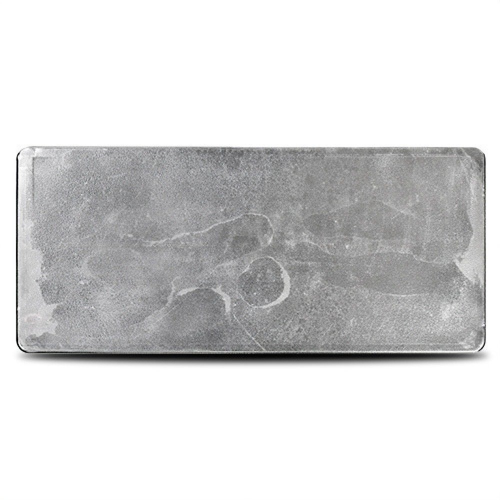 These cast silver bars, like many others, have a blank reverse element. Both fields of the 100 oz SilverTowne Pony Silver Bar showcase natural striations and other texture lines as a result of the silver cooling during the casting process.