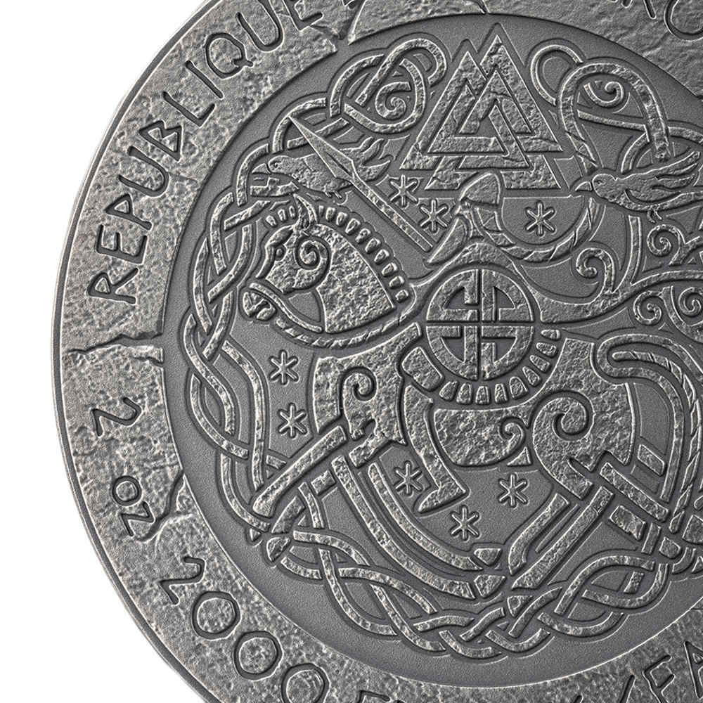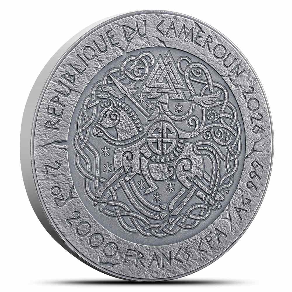 The obverse of 2026 Antique Cameroon Silver The Way to Valhalla Coins features a portrait of the fearsome warrior, Rollo of Normandy. Rollo’s greatest achievement was transforming from a Viking raider into a legitimate feudal ruler and establishing the Duchy of Normandy as a stable, prosperous territory. He successfully integrated Norse and Frankish cultures, encouraging his followers to adopt local customs, the French language, and Christianity while maintaining Viking military prowess and administrative efficiency. His governance laid the foundation for Normandy to become one of medieval Europe’s most powerful regions, and his descendants would go on to conquer England in 1066 under William the Conqueror.