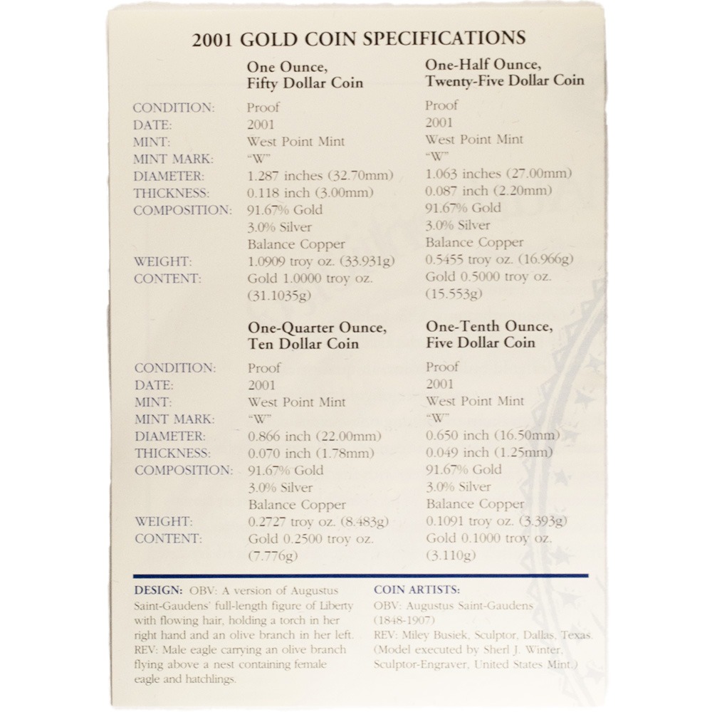 | Product Title | 2001-W 4-Coin Proof American Gold Eagle Set (Box + CoA) |