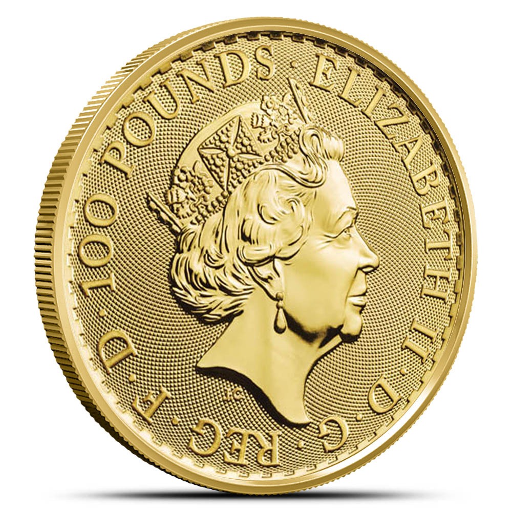 Nathan’s depiction offers a powerful vision of Britannia as the guardian of the nation and controller of the seas guarding the British Isles. When the program launched in 1987, all 1 oz gold coins in the series featured 22-karat gold content, or .9167% gold. The non-gold component in those coins was copper until 1989 and silver from 1990 to 2012. Since 2013, the coins have featured .9999 pure gold content.