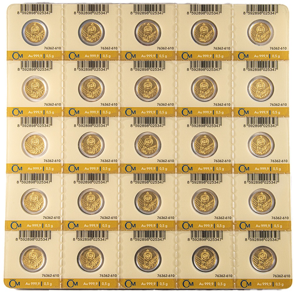 - Consists of 12.5 grams (.4019 Troy oz) of .9999 pure gold.