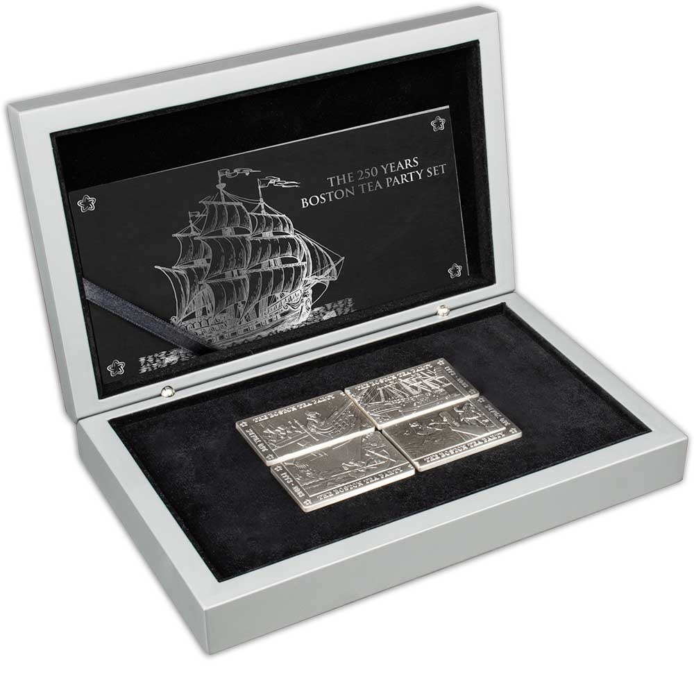 On December 16, 1773, Massachusetts colonists dumped 343 tea chests into the Boston Harbor in protest of the British Tea Act. In honor of this powerful act of defiance, we are thrilled to present a new 4-piece set featuring a Boston Tea Party motif. The visuals are inspired by the four stamps the U.S. Post Office issued in 1973. Now, 2023 Antique Barbados Silver The Boston Tea Party 4-Coin Sets are available to you for purchase online.