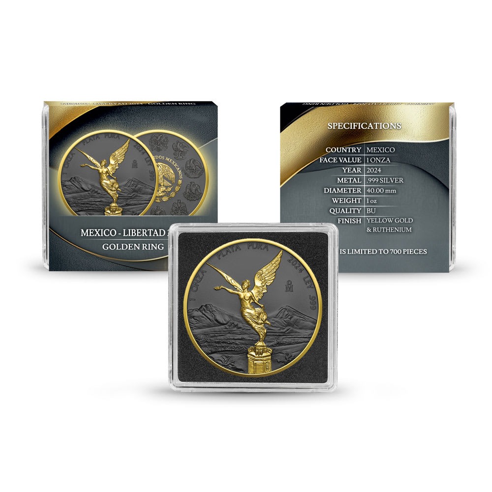 | Product Title | 2024 1 oz Golden Ring Mexican Silver Libertad Coin (Ruthenium, Gilded, In Capsule) |