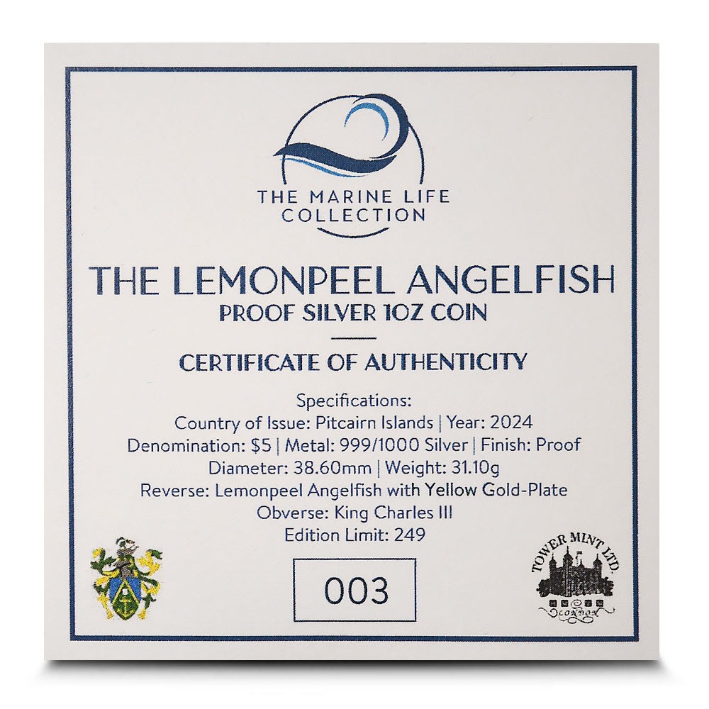 | Product Title | 2024 1 oz Proof Pitcairn Islands Silver Lemonpeel Angelfish Coin (Gilded, Box + CoA) |