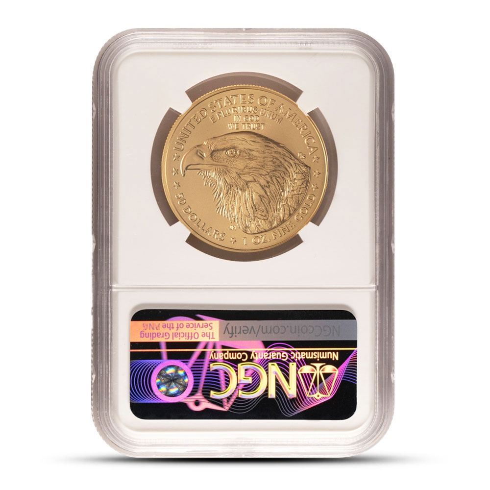 All 2025 1 oz American Gold Eagle Coins in this listing come in plastic slabs with a near-perfect certification. Mint State 69 coins have full, original mint luster with a maximum of two minor flaws possible. These flaws are limited to minuscule contact marks or hairlines. Early Release coins are those received for certification within 30 days of release from the mint.