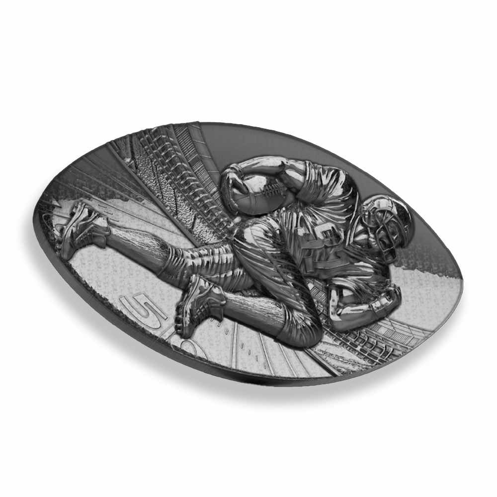 The American football evolved from the round balls used in early rugby and soccer, gradually transforming into its distinctive prolate spheroid shape in the late 19th and early 20th centuries. Early footballs were made from inflated pig bladders encased in leather, which explains the enduring nickname “pigskin.” Now, 2025 2 oz Antique Samoa Silver Touch Down Coins are available online.