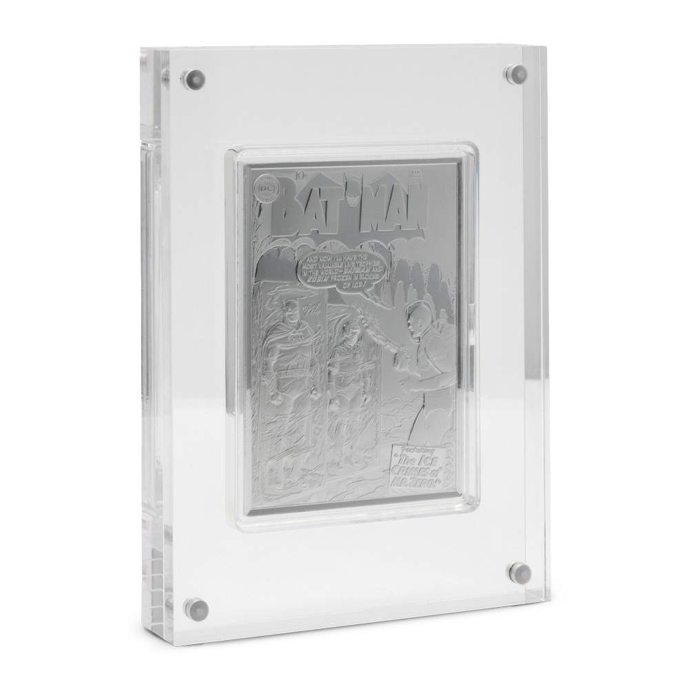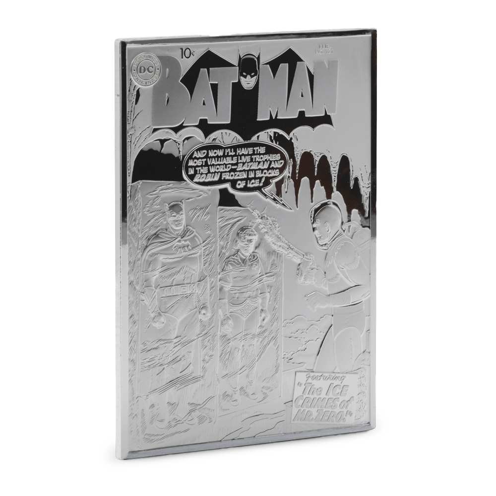 For the reverse of 2025 Proof Niue Silver Age Batman #121 Silver Coins, the design features artwork from the cover of issue #121. The cover of Batman #121 features the distinctive artistic style of Curt Swan and Stan Kaye, showcasing Batman and Robin in a dramatic scene that exemplifies the Silver Age’s emphasis on eye-catching, action-oriented imagery designed to grab readers’ attention from newsstand racks. In the design, Batman and Robin are frozen solid by Dr. Zero.