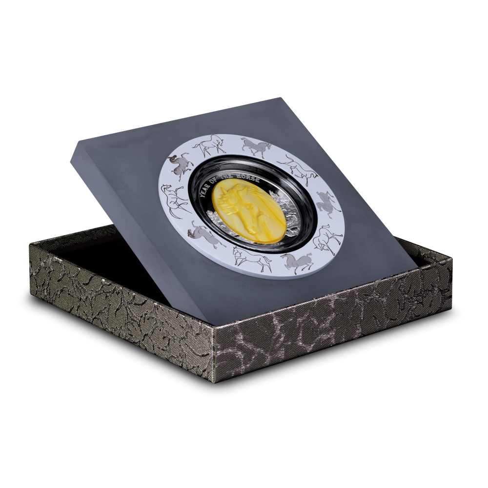 All 2026 5 oz Proof Solomon Islands Silver Mother of Pearl Year of the Horse Coins are available with individual packaging. The coins are encapsulated and presented in a protective box with a Certificate of Authenticity included. Each coin has a beautiful Mother of Pearl finish that creates a distinct luster.