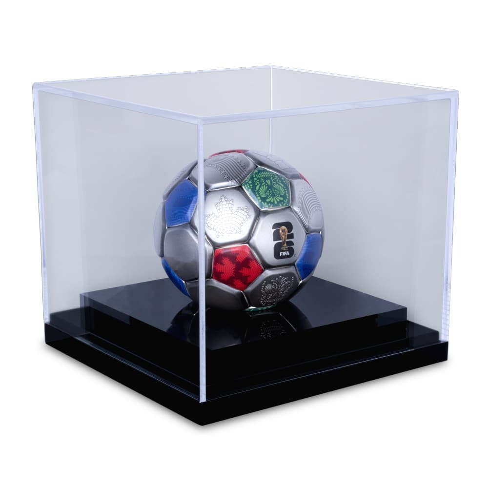 Each 2026 3 oz Solomon Islands Colorized Silver FIFA Soccer Ball Spherical Coin comes with a beautiful presentation display. The coins are housed in a clear, acrylic case with a black base to secure the ball. The coins come with a Certificate of Authenticity and a commemorative mintage of 2,026 coins.