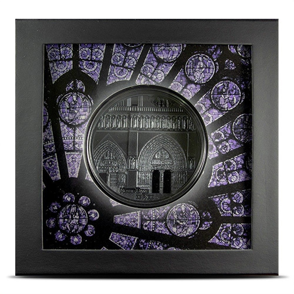 • The obverse field depicts the exterior of the Notre Dame cathedral.