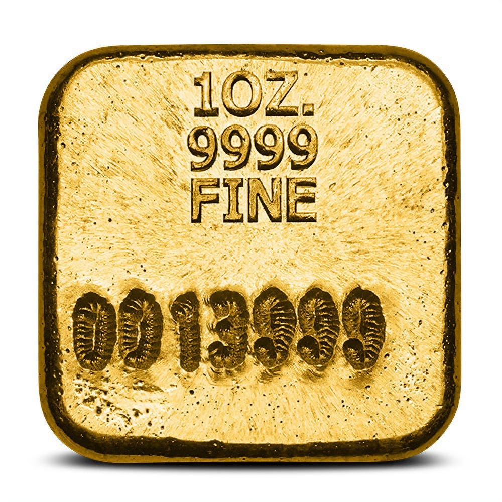 Reverse imagery for the 1 oz Cast Gold Bar includes only markings that identify the bar. These markings include the weight, purity, and metal content at the top of the design field. Additionally, you will find a unique serial number between 1 and 15,000 on the bar.