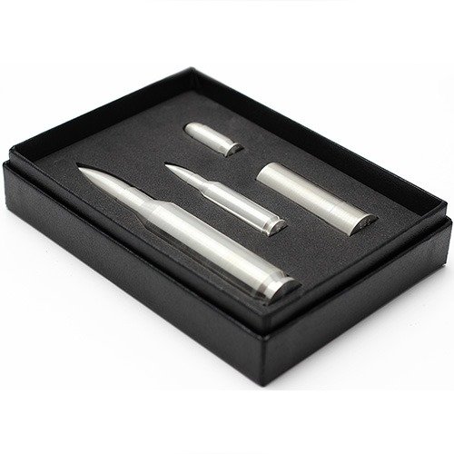 Each of the Silver Bullet Multi Packs you can purchase here today feature a total of four different silver bullets crafted in the exact shape as actual ammunition. The set houses a .45 caliber round, .308 caliber round, a shotgun shell, and the famed .50 caliber round. The silver bullets are individually housed in their own slots within the black protective box for perfect presentation and protection.